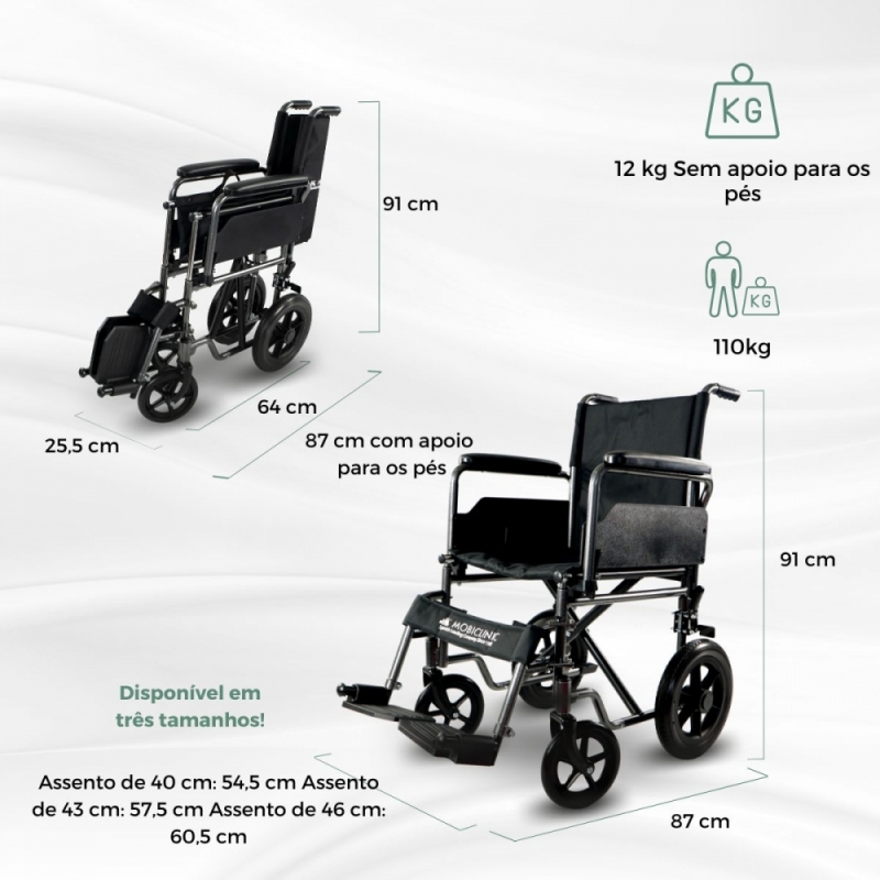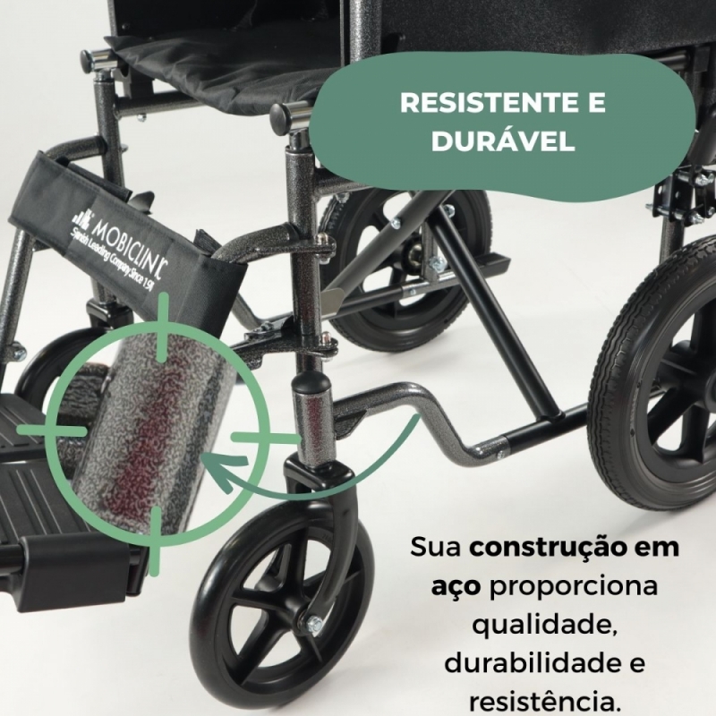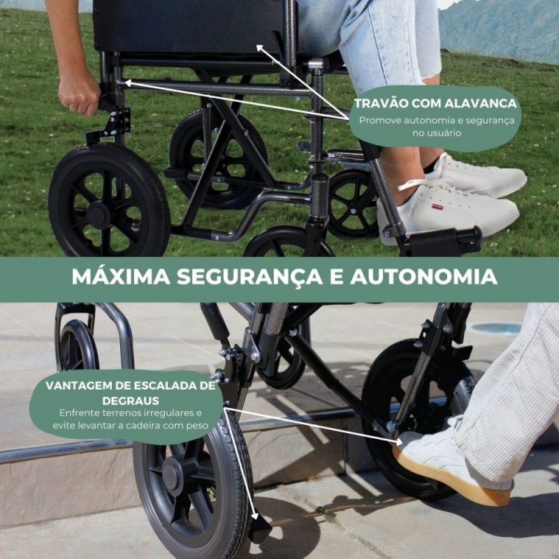 Além disso, é dobrável para fácil transporte e armazenamento, tornando-a uma cadeira de rodas leve e leve . Como se não bastasse, suas rodas são pequenas e sólidas, sinônimo de durabilidade e segurança, características que a tornam uma cadeira de rodas manual de fácil manuseio. Além disso, total segurança na hora de prevenir quedas e criar um maior grau de autonomia e independência para o usuário.