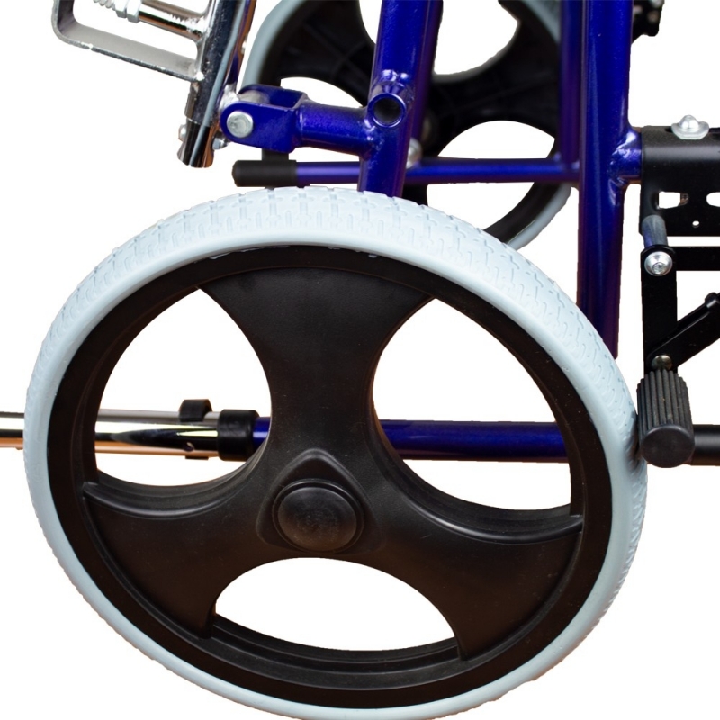 As rodas de 20 e 30 cm de diâmetro facilitarão o transporte do usuário ao seu acompanhante.