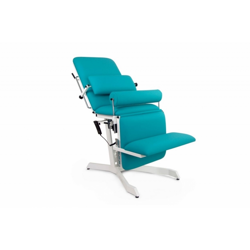 Cadeira para retoscopia, urologia e proctologia elétrica, altura fixa com regulagem Trendelenburg / anti-trem com controle manual.