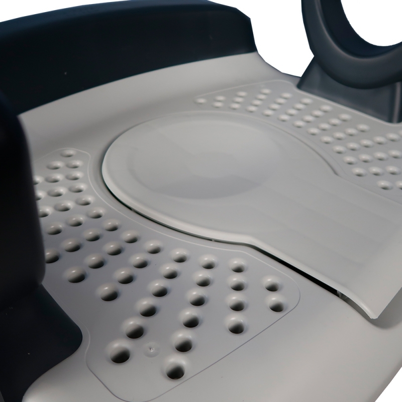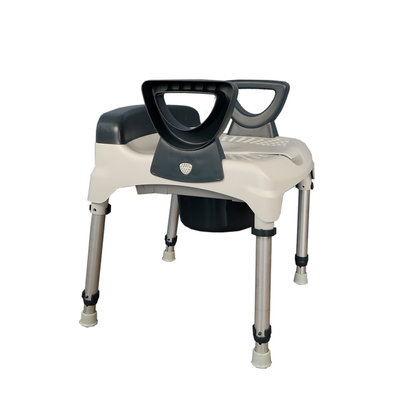 A cadeira sanitária AQ-TICA tem 2 funções: ajuda com os cuidados corporais e a higiene pessoal. Pode ser usada como uma cadeira sanitária ou como uma cadeira de banho, disponível em cinzento e sem encosto. A AQ-TICA é entregue como um kit numa caixa e pode ser facilmente montada sem ferramentas.