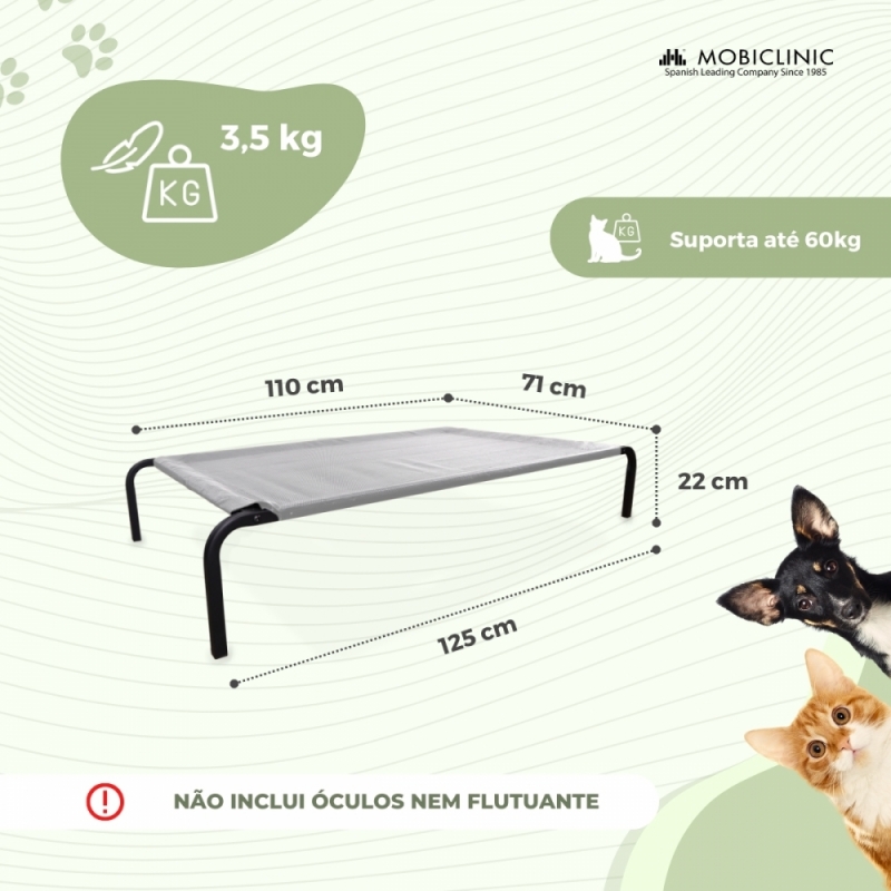 LEVE E PORTÁTIL: Esta cama alta para animais de estimação é ideal para espaços internos e externos. Devido ao seu peso leve e tamanho, você pode levá-lo para a sala ou jardim sem nenhum problema para que seu cão possa descansar ao seu lado onde quer que você esteja.