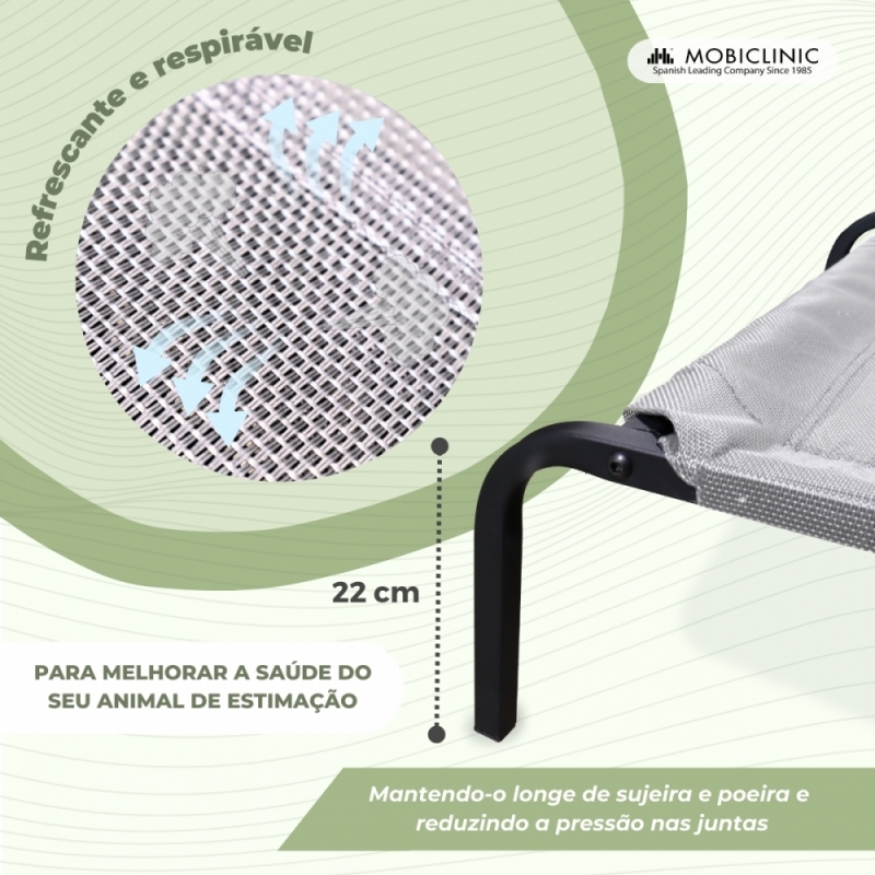 A cama elevada para cachorro é uma opção refrescante e isolante para os dias mais quentes do verão, pois mantém seu animal longe do chão e permite que o ar flua mais livremente em todas as direções. Dessa forma, seu cão poderá descansar após uma longa caminhada e não se sujar no chão ou congelar enquanto estiver molhado.