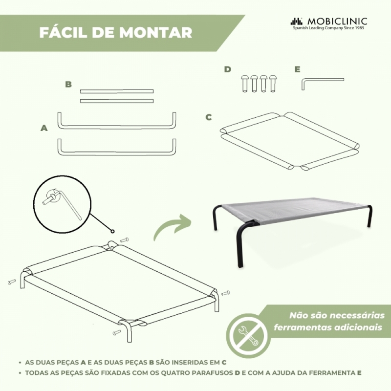 FÁCIL MONTAGEM: Esta cama elevada para cães possui um design simples e muito intuitivo de montagem, portanto você a terá pronta em poucos minutos e sem a necessidade de ferramentas.