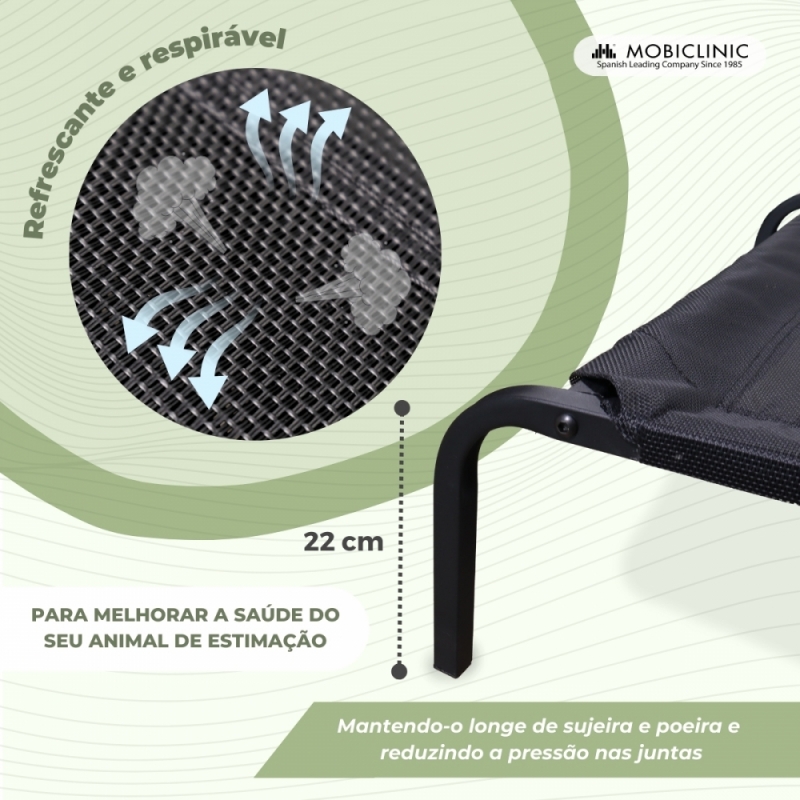 A cama elevada para cachorro é uma opção refrescante e isolante para os dias mais quentes do verão, pois mantém seu animal longe do chão e permite que o ar flua mais livremente em todas as direções. Dessa forma, seu cão poderá descansar após uma longa caminhada e não se sujar no chão ou congelar enquanto estiver molhado.