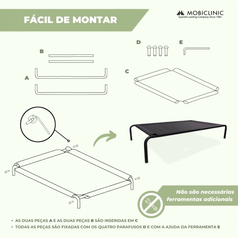 FÁCIL MONTAGEM: Esta cama elevada para cães possui um design simples e muito intuitivo de montagem, portanto você a terá pronta em poucos minutos e sem a necessidade de ferramentas.