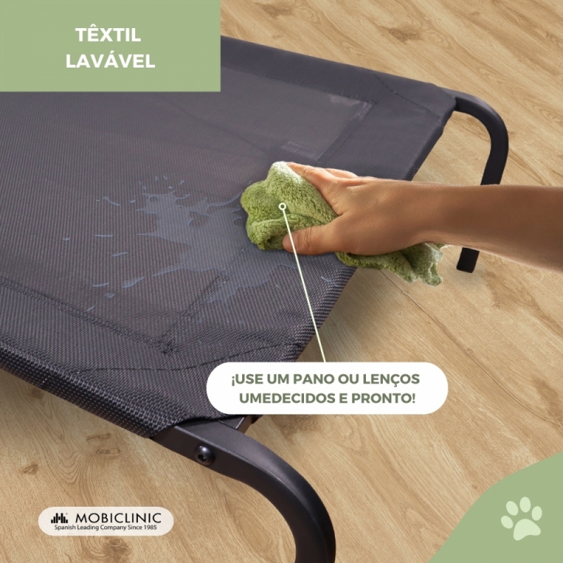FÁCIL DE LIMPAR: A cama Cleo é muito fácil de limpar, pois permite lavar a tela com lenços ou diretamente da água da torneira. Para uma limpeza mais profunda, basta usar sabão neutro ou limpador natural em todas as superfícies e enxaguar abundantemente.