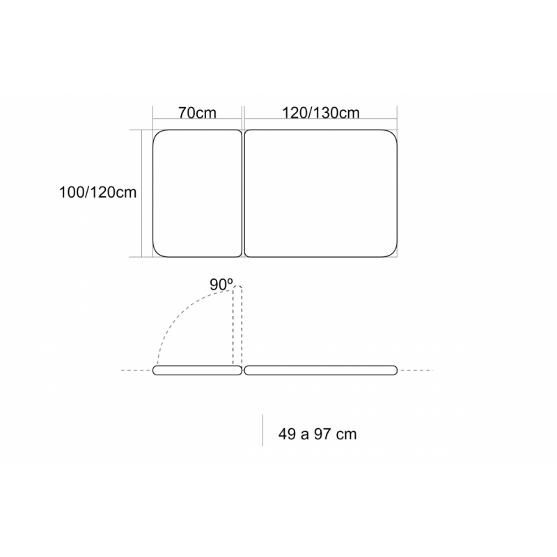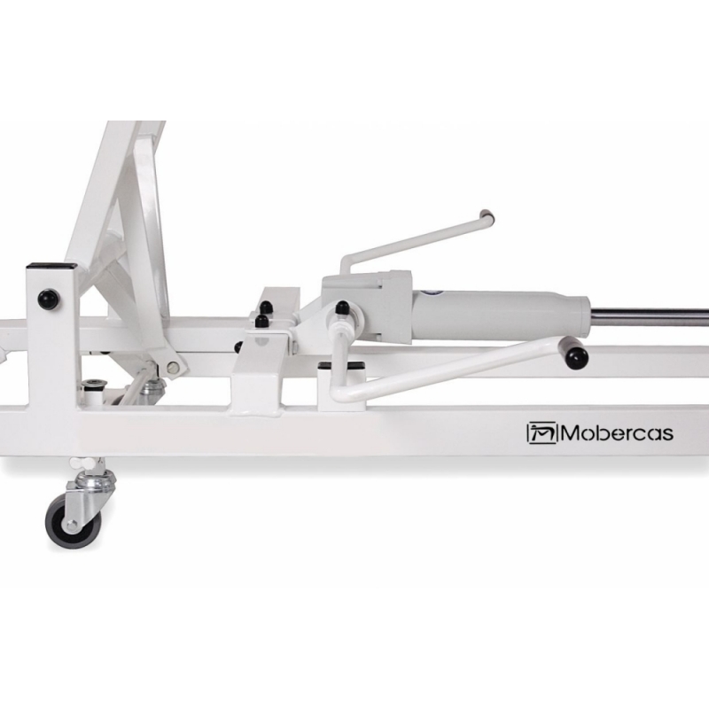 Maca hidráulica Bobath de 2 seções com rodas retráteis. Mede 190x100.