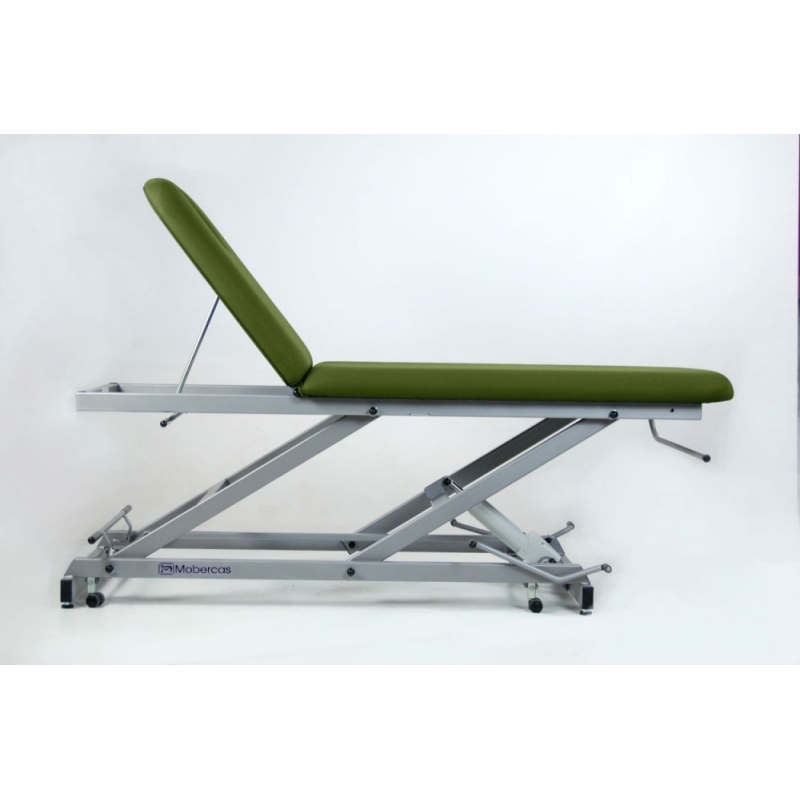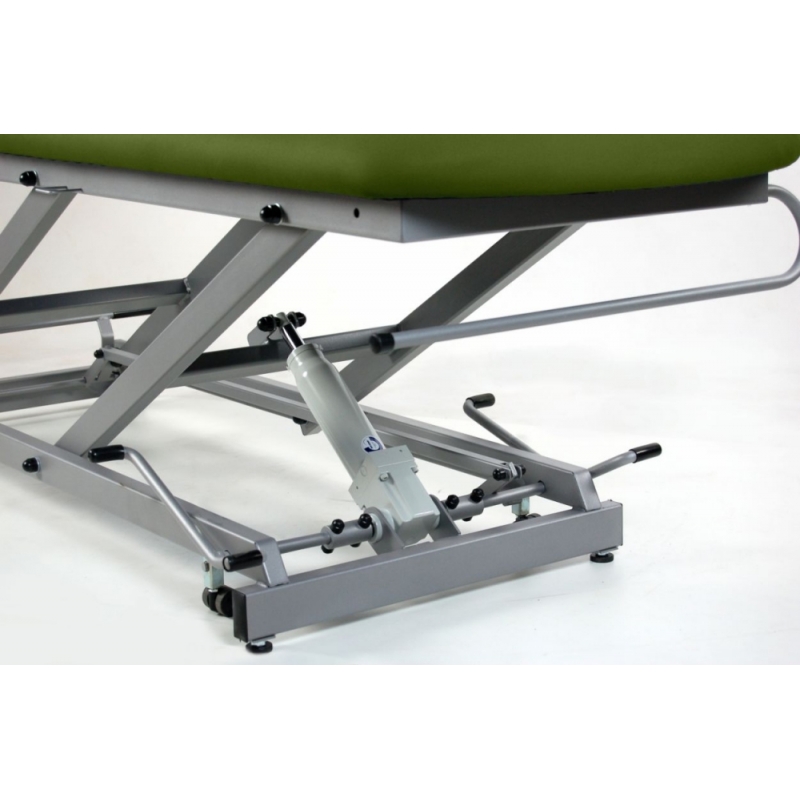 Marquesa de exame hidráulico de 2 seções, com suporte de rolo, tampa frontal e rodas retráteis.