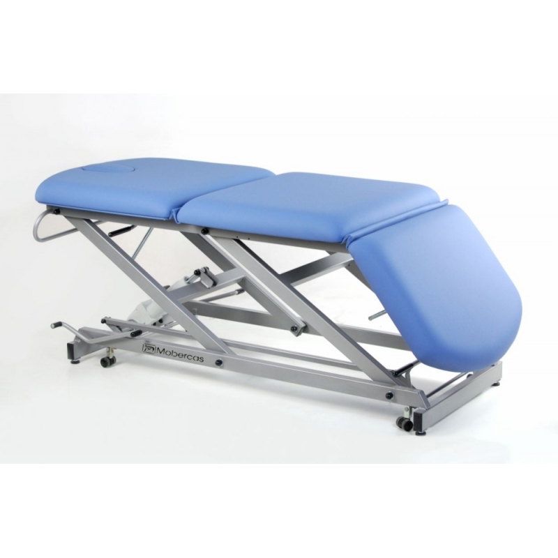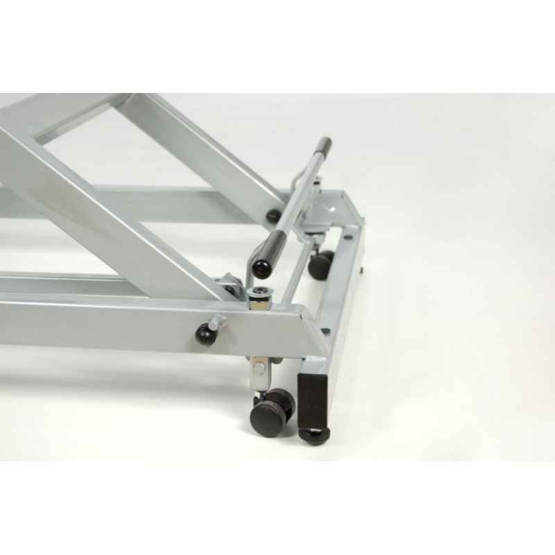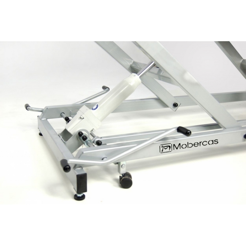 Maca tipo cadeira hidráulica de 3 seções com suporte de rolo, tampão frontal e rodas retráteis.