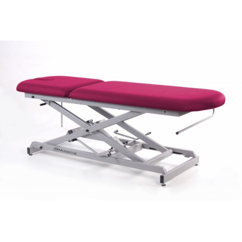 Marquesa de exame hidráulico de 2 seções com elevação reta sem movimento lateral, suporte de rolo e plugue frontal.
