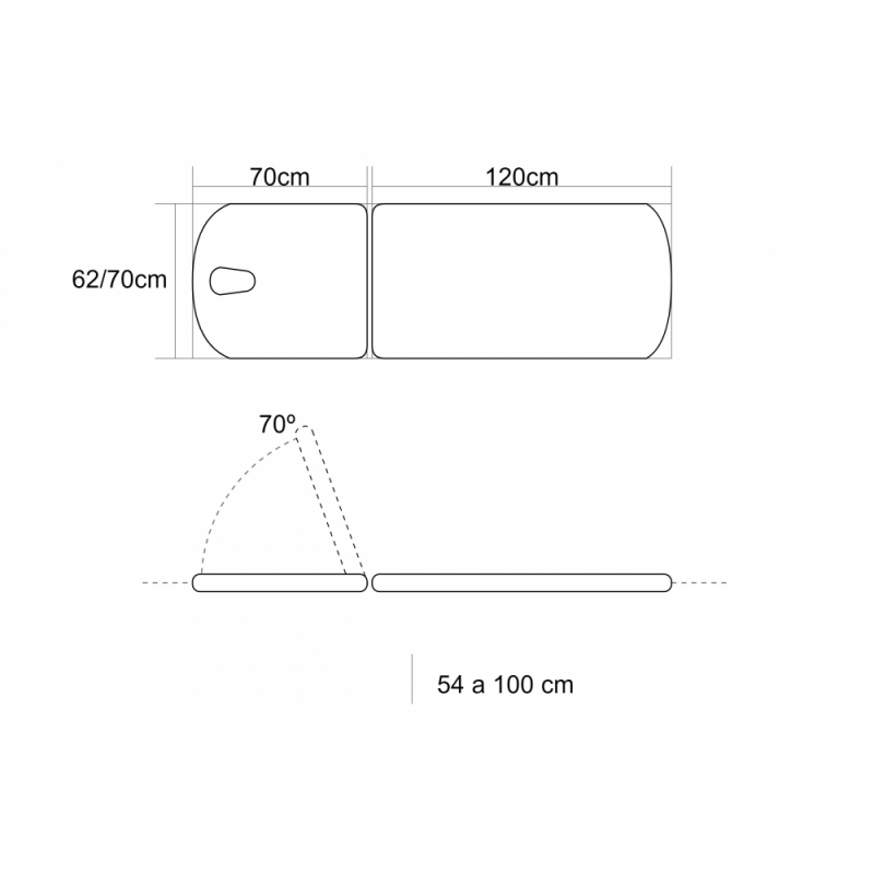 Marquesa de exame hidráulica de 2 seções | (120 + 70) x62 / 70 cm | Altura ajustável | CH-0127