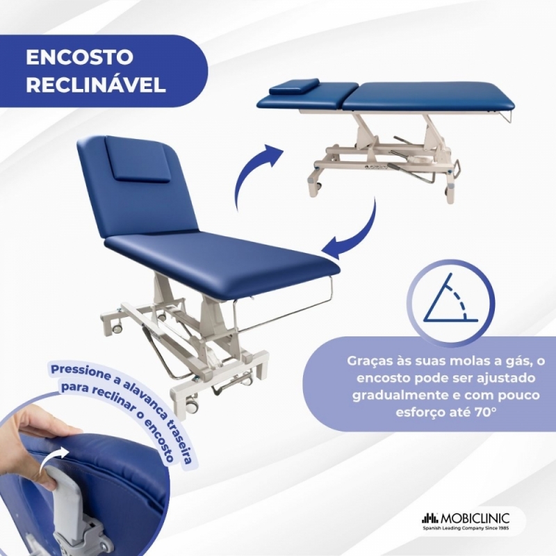 A maca hidráulica é uma solução prática, robusta e versátil para clínicas, centros de fisioterapia ou consultórios de estética. Projetada para proporcionar o máximo conforto ao paciente e facilidade de uso ao profissional, ela combina um sistema de ajuste de altura com encosto reclinável.