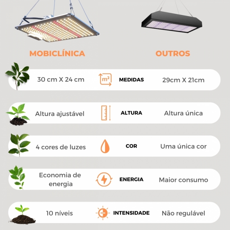 CUIDE DAS SUAS PLANTAS: A luz para plantas Growlight se ajusta às necessidades específicas de suas plantas, melhorando a fotossíntese e garantindo uma saúde ideal. Os depoimentos de nossos usuários apoiam um aumento surpreendente de 38% no rendimento depois de passarmos para nosso cultivo leve. Com uma impressionante emissão de luz de até 2,8 mol/j, suas plantas estarão nas melhores mãos.