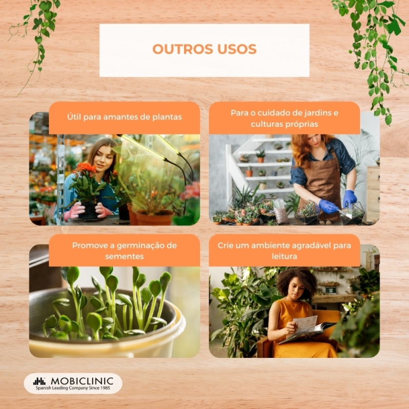 Modo LED branco: Ideal para melhorar a fotossíntese, germinação, crescimento de mudas, floração e amadurecimento de frutos.