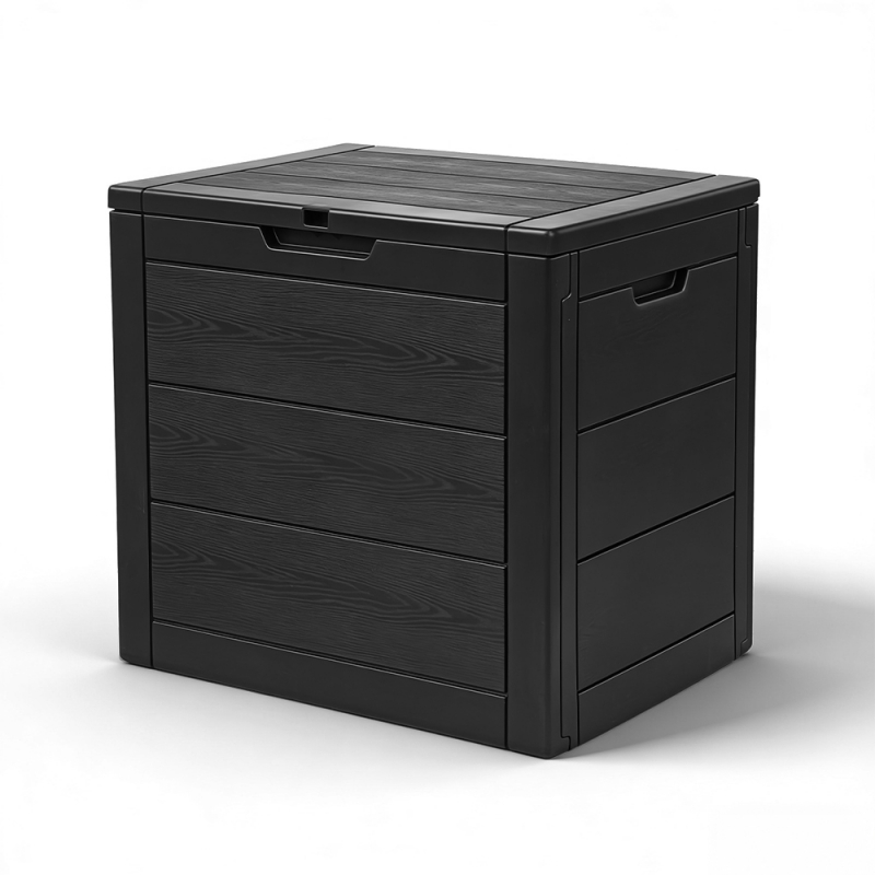 DESIGN COMPACTO E FÁCIL DE TRANSPORTAR: O design deste baú de armazenamento externo à prova d'água otimiza o espaço disponível, tornando-o adequado para jardins, terraços, pátios ou ambientes internos. Ele também possui alças laterais para facilitar o transporte e um acabamento com efeito madeira que proporciona uma aparência mais refinada e moderna em comparação com o plástico convencional.