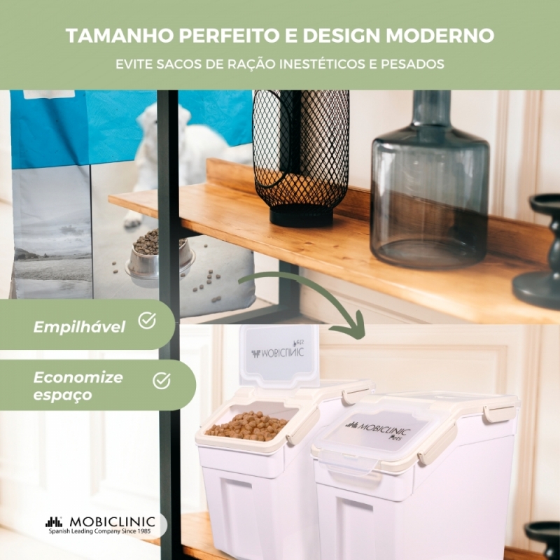 Com FeedPet você pode manter o espaço de armazenamento de alimentos para seus cães, gatos ou outros animais arrumado. Pode ser empilhado facilmente, economizando espaço e evitando sacos de ração inestéticos e pesados.
