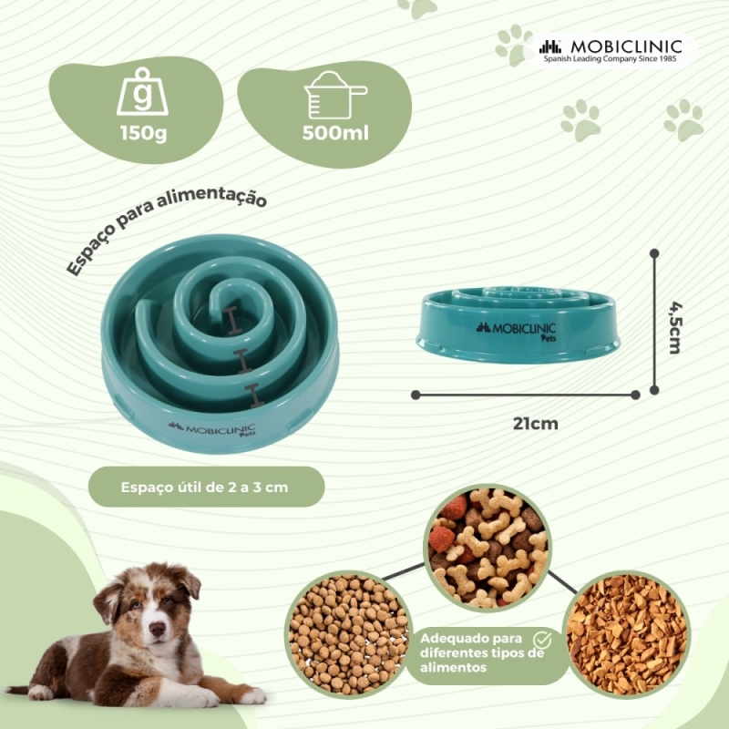 • Sua estrutura em espiral e base antiderrapante garantem uma alimentação lenta e segura