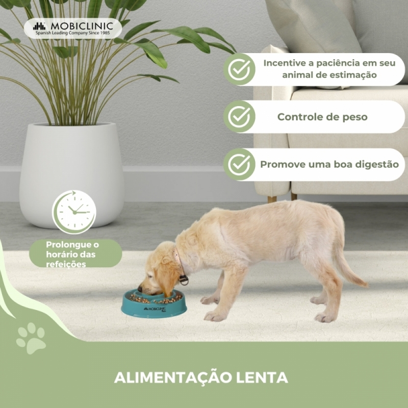 O alimentador lento MobiEat vai além de simplesmente desacelerar a alimentação do seu animal de estimação. Esta tigela inovadora não só evita o vómito e reduz o inchaço do estômago , mas também promove uma digestão mais saudável .