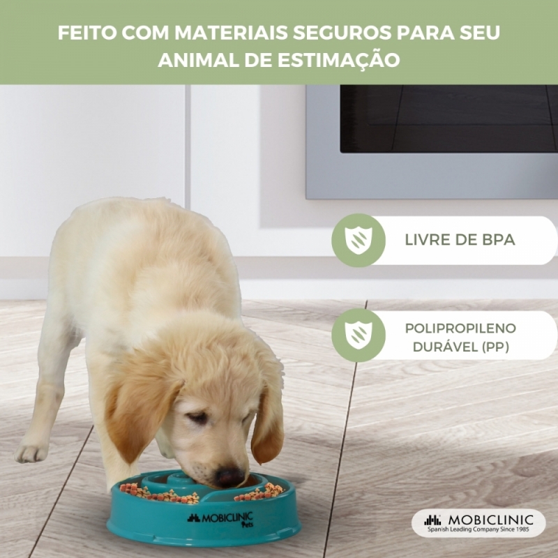 COMPATÍVEL COM DIFERENTES TIPOS DE ALIMENTOS : É adequado para vários tipos de alimentos , sejam alimentos secos, úmidos, crus, até água, leite... O comedouro é a solução ideal para cães glutões que comem com ansiedade e excessivamente rápido .
