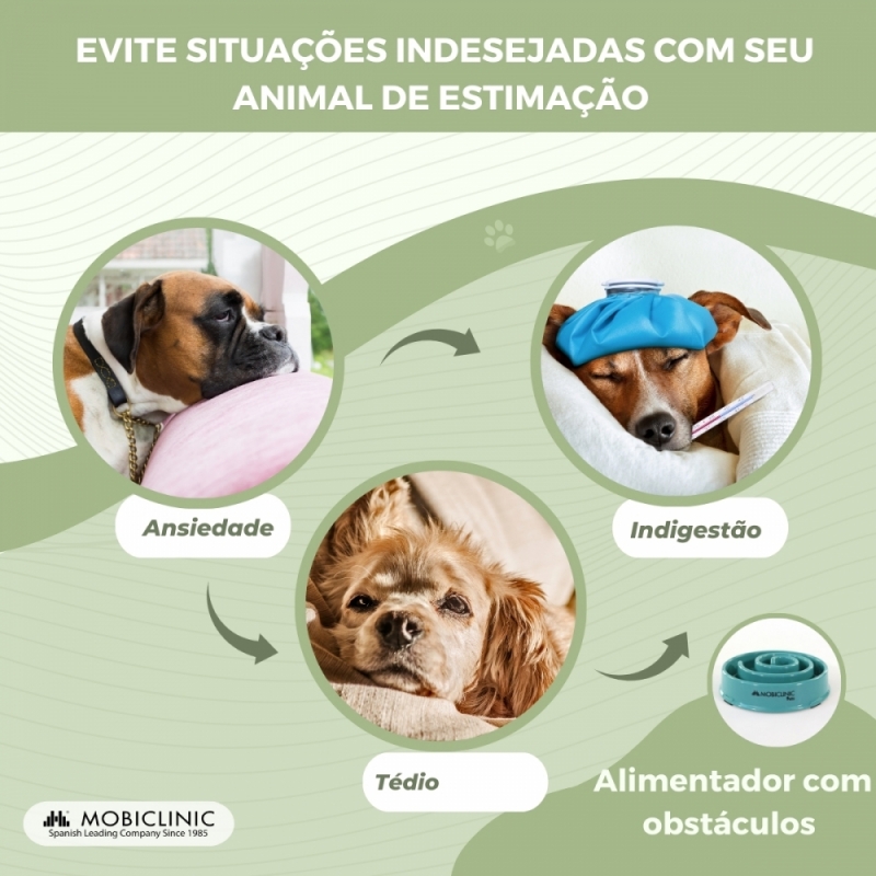 O comedouro MobiEat é a solução ideal para cães glutões que comem de forma ansiosa e excessivamente rápida .