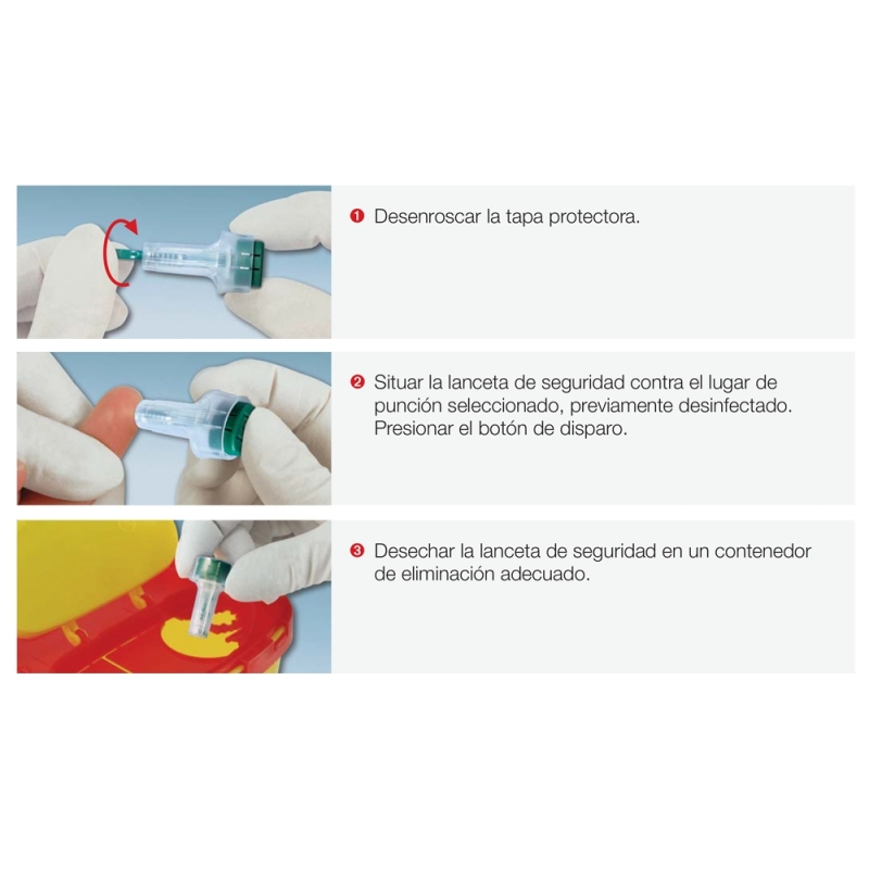 3. Descarte a lanceta de segurança em um recipiente de descarte adequado.