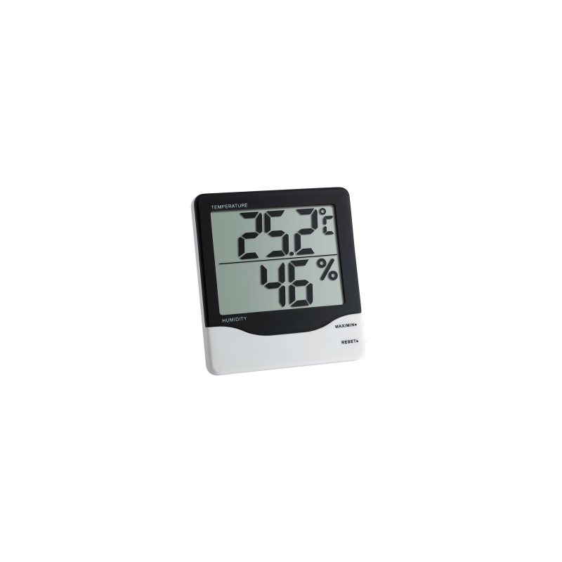 Este termo-higrômetro funcional é um instrumento de medição ideal para monitorar o clima interno. Você pode monitorar facilmente a temperatura e a umidade. Os valores máximo e mínimo são armazenados e exibidos com o toque de um botão. O grande display facilita a leitura.