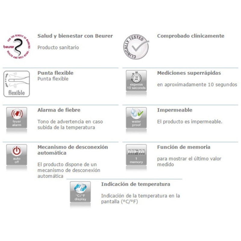 O termômetro Digital rápido Beurer E capaz de determinar hum ultra-medindo aproximadamente. 10 segundos E UMA ponta Medição conveniente e Flexível para uma Segurança sua, A SUA Família projetado é e pacientes Vidro e Mercúrio semana.