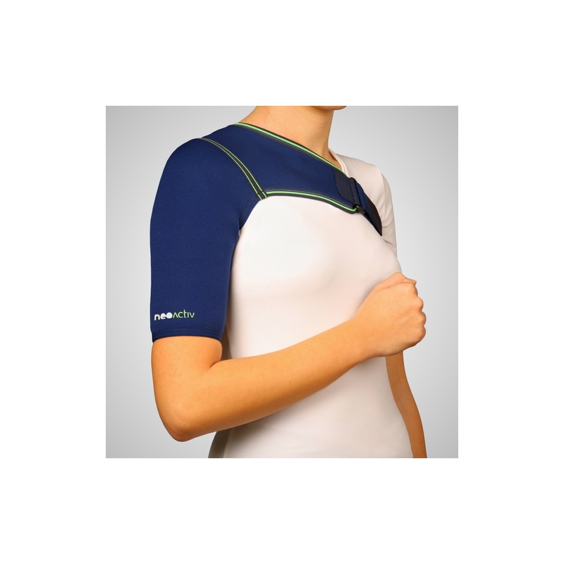 por meio de uma cinta com fecho de velcro. Segure a articulação gleno-umeral e traga calor