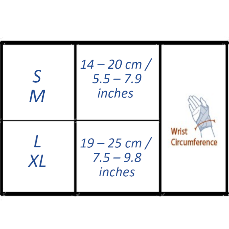 Suporte do pulso feito de silicone multicamadas (Silprene-F), respirável e elástico, que permite regular a compressão e tracção exercida sobre o polegar de acordo com as necessidades de cada paciente. Está equipado com uma cinta elástica que permite a estabilização e a abducção da articulação metacarpo-falângica do polegar.