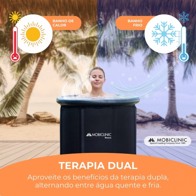 TERAPIA DUPLA: Com a banheira Artic você tem controle absoluto. Aproveite os benefícios da terapia dupla, alternando entre água quente e fria. A imersão em água fria ajuda a reduzir a inflamação e acelerar a recuperação, enquanto a água quente relaxa os músculos, melhora a circulação e alivia o estresse . Uma combinação perfeita para otimizar o seu bem-estar. A escolha é sua!