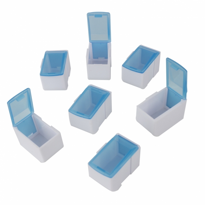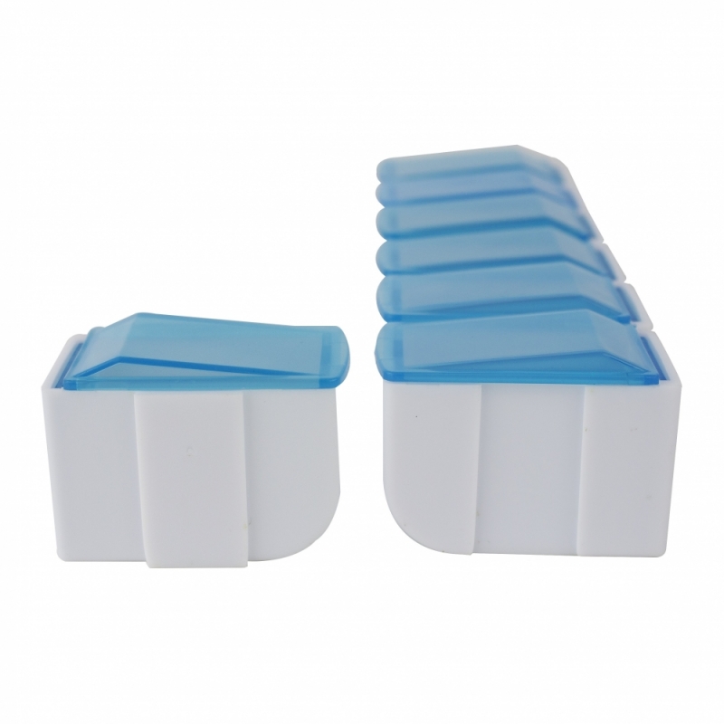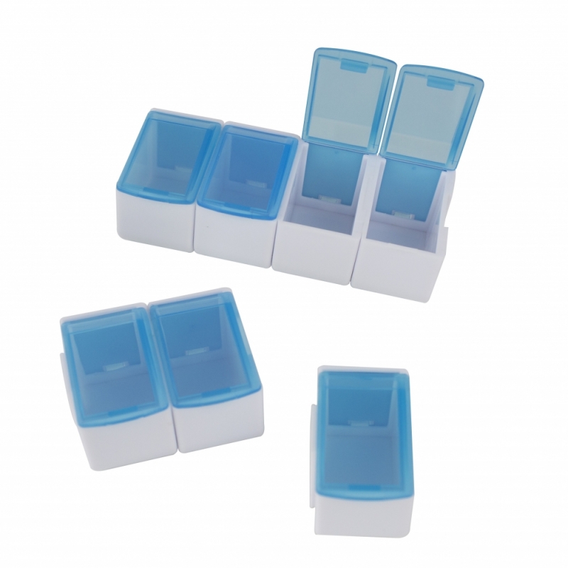 O organizador de comprimidos consiste em 7 compartimentos removíveis e independentes onde a pessoa pode colocar e remover a medicação sem qualquer dificuldade.