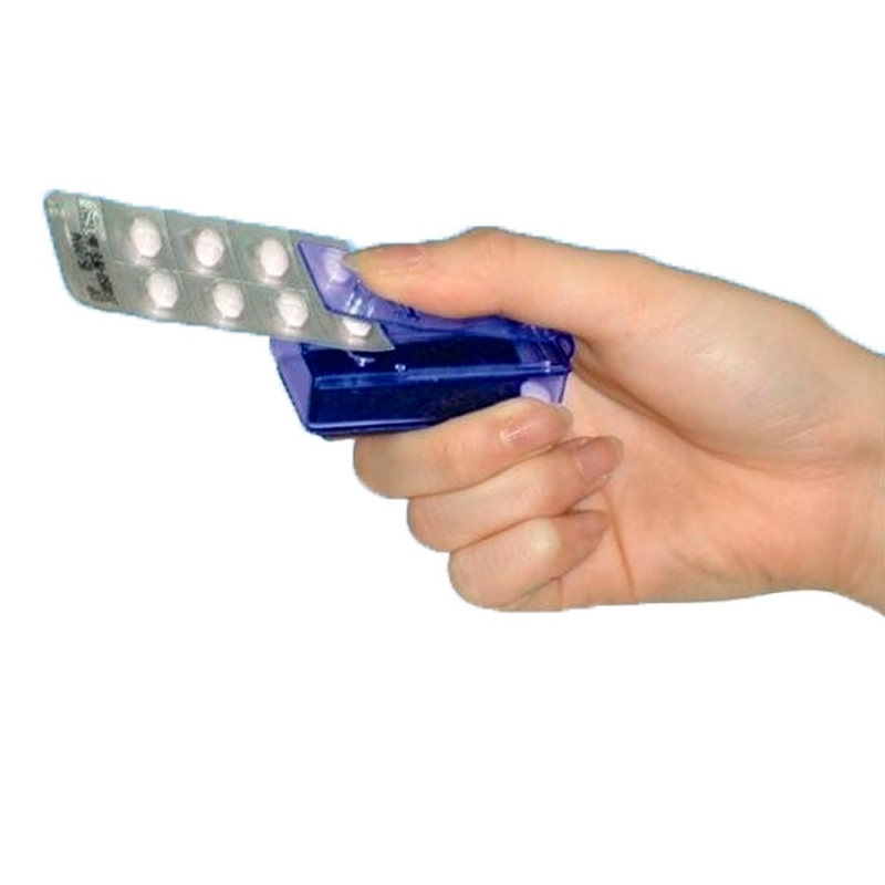 Extrator de comprimidos projetado para remover fácil e convenientemente os medicamentos das embalagens de tipo blister. É um produto de grande ajuda para pessoas com fragilidade nas articulações superiores e que têm dificuldade em tomar as suas doses sem a ajuda de outros.
