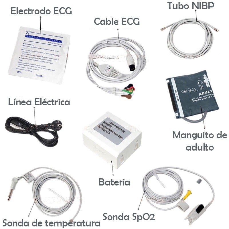 Permite a medição, visualização e gravação da pressão arterial não invasiva (NIPB), saturação do oxigénio (SpO2), respiração, eletrocardiograma e temperatura. Função de cálculo de doses de fármacos. Sinais vitais, ECG, RESP, TEMP, IBP.