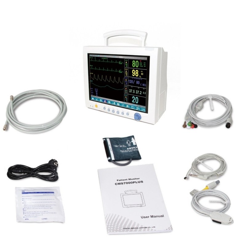 Permite a medição, visualização e registro de pressão arterial não invasiva (NIBP), saturação de oxigênio (SPO2), respiração, eletrocardiograma e temperatura, além de monitorar parâmetros como ECG, RESP, PR e TEMP de canal duplo, etc.