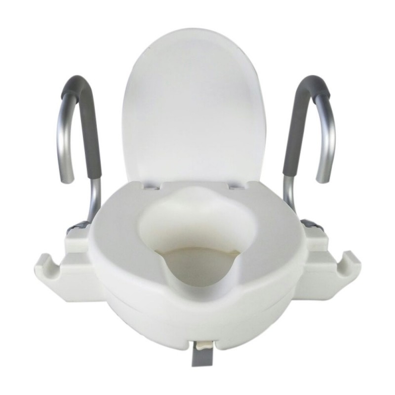 Alteador de sanita com braços dobráveis para facilitar a saída da sanita. Ideal para pessoas que têm dificuldade em sentar-se e/ou levantar-se da sanita. Proporciona um ponto de apoio eficaz e confortável para pessoas com mobilidade reduzida.