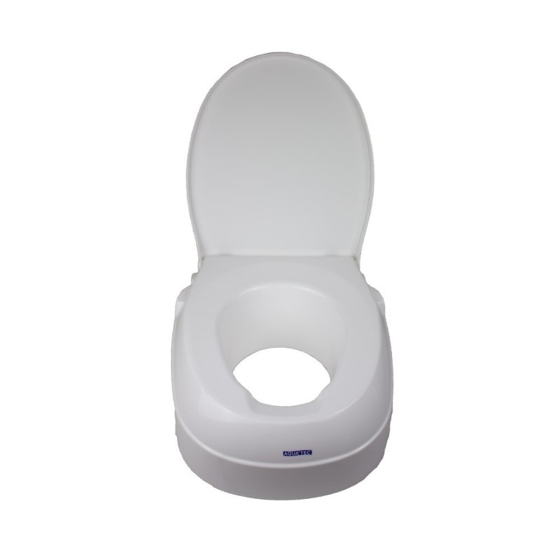O elevador de sanita com tampa Aquatec 900 sem apoios de braço facilita a utilização da sanita de um modo muito mais cómodo.