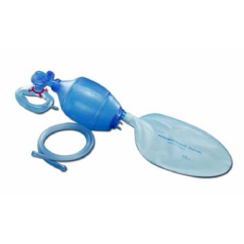 Reanimador manual descartável para adultos feito de PVC. Sem látex.