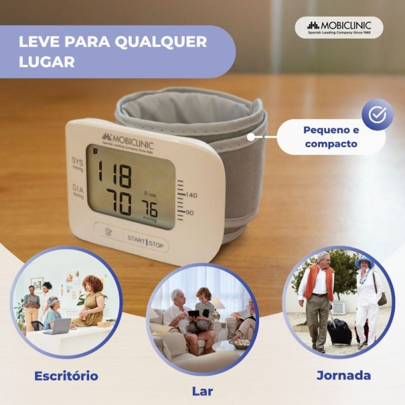 O monitor de pressão arterial de pulso Vitalpress permite monitorar sua pressão arterial em casa e em qualquer lugar. Seu design compacto e intuitivo o torna a escolha ideal para qualquer usuário, especialmente idosos.