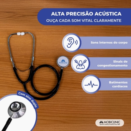 Estetoscópio de sino duplo | Alumínio | Preto | Mobiclinic