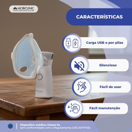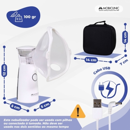 Este nebulizador pode ser usado sem fio, utilizando pilhas, ou conectado a uma tomada via USB (inclusa). Isso o torna ideal para uso em qualquer lugar e garante uma operação segura. Sua operação é intuitiva, com apenas um botão, adequada para qualquer usuário. Além disso, seu sistema "push" permite a fácil remoção do copo medidor, garantindo limpeza e higiene adequadas.