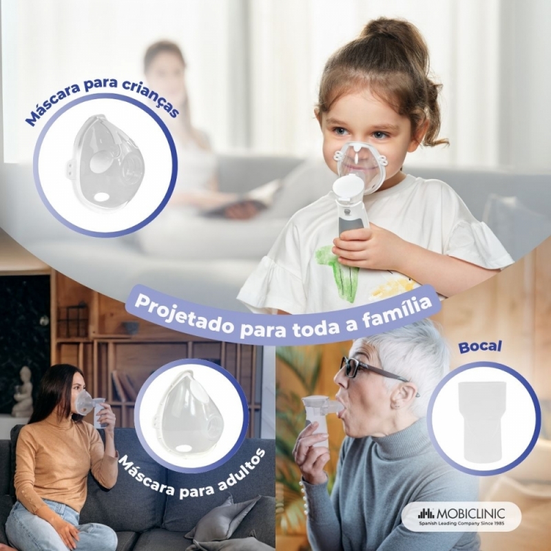 PARA TODA A FAMÍLIA: Este nebulizador é muito fácil de usar, bastando apertar um botão, tornando-o acessível a qualquer usuário, até mesmo crianças. Inclui também um bocal, uma máscara para adulto e uma máscara para criança, adaptando-se às necessidades de qualquer usuário.