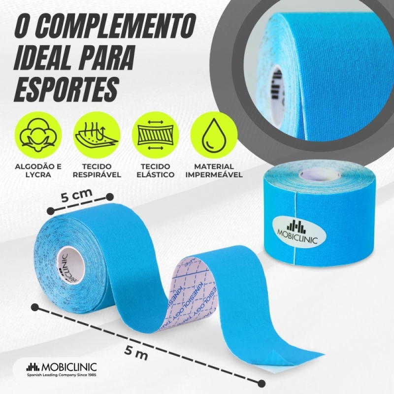A ligadura kinésio é adequada para o tratamento de lesões, inflamações ou para melhorar a circulação graças a sua impermeabilidade, aderência e respirabilidade.