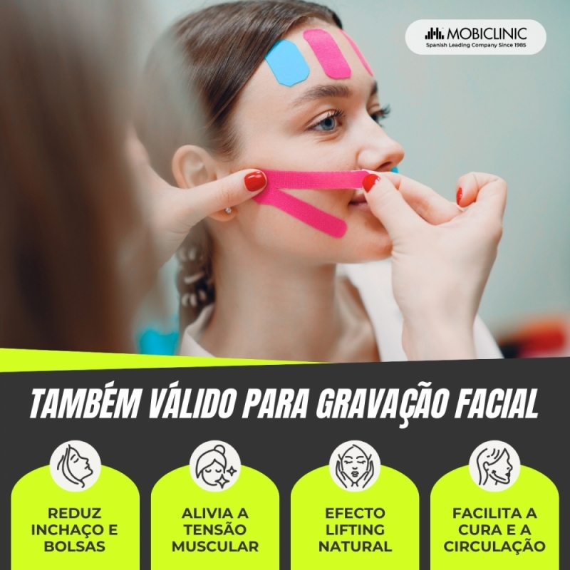 Além disso, as fitas kinésio são suaves e oferecem o máximo conforto para se adaptarem à pele O kinésio tape é ótimo para desportistas por causa das diferentes metodologias de aplicação e mobilidade completa. Pode utilizar-se durante vários dias e oferece soluções preventivas e melhora do desempenho desportivo