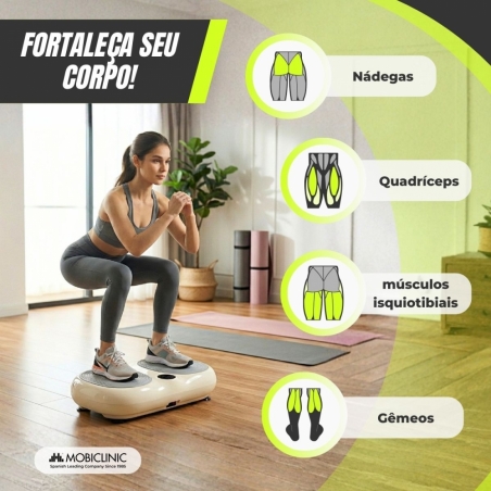 ESTÁVEL E SEGURO: Com um motor de 200 W e capacidade máxima de peso de até 130 kg, oferece vibração consistente e estável. Sua construção em aço e plástico ABS proporciona resistência, durabilidade e segurança durante o uso.