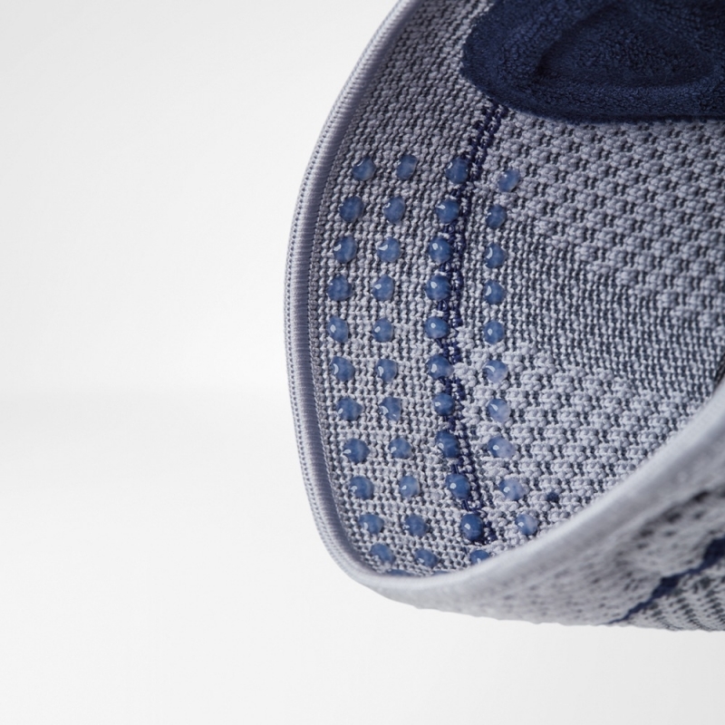 O tecido anatómico em alto/baixo relevo texturizado estimula os propriocetores do joelho, melhorando o controlo dos músculos estabilizadores das articulações. A almofada Omega+ Pad cobre e protege a rótula. O GenuTrain é firmemente posicionado com varas de plástico flexíveis, e o seu tecido macio e respirável no tendão proporciona conforto. Ajudas integradas de inserção e remoção facilitam a sua utilização.