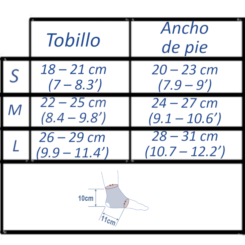 Estabilizador do tornozelo feito de silicone multicamadas (Silprene-F), transpirável e elástico, que permite regular a compressão e tracção exercida sobre a área afectada de acordo com as necessidades de cada paciente, permitindo a livre circulação do pé.