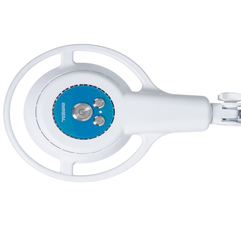 A forma circular da cabeça e sua alça na parte inferior facilitam seu posicionamento exato, satisfazendo as necessidades ergonômicas para qualquer uso.