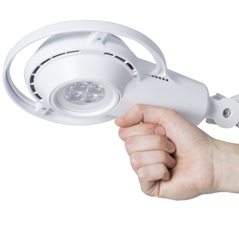 Luminária de pequena cirurgia e exploração avançada com fonte de luz LED e braço articulado de grande precisão que permite regular a luminária em qualquer posição.