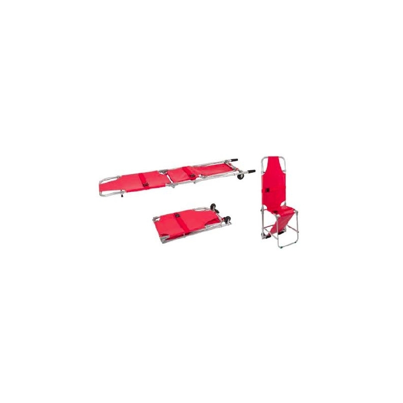 Maca de cadeira muito leve e de baixo peso. Ela pode ser convertida em uma cadeira de transferência de paciente. Possui 2 rodas funcionais e duas alças de alumínio. Duas correias garantem a segurança do transporte.