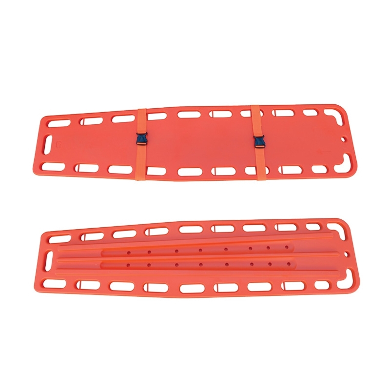 Placa espinhal feita de uma única peça de PEAD (polietileno de alta densidade). Estrutura firme que facilita o transporte. Permite o uso de Raios-X. Duas correias garantem a segurança do transporte. Grande resistência a choques e corrosão. Flutuando.